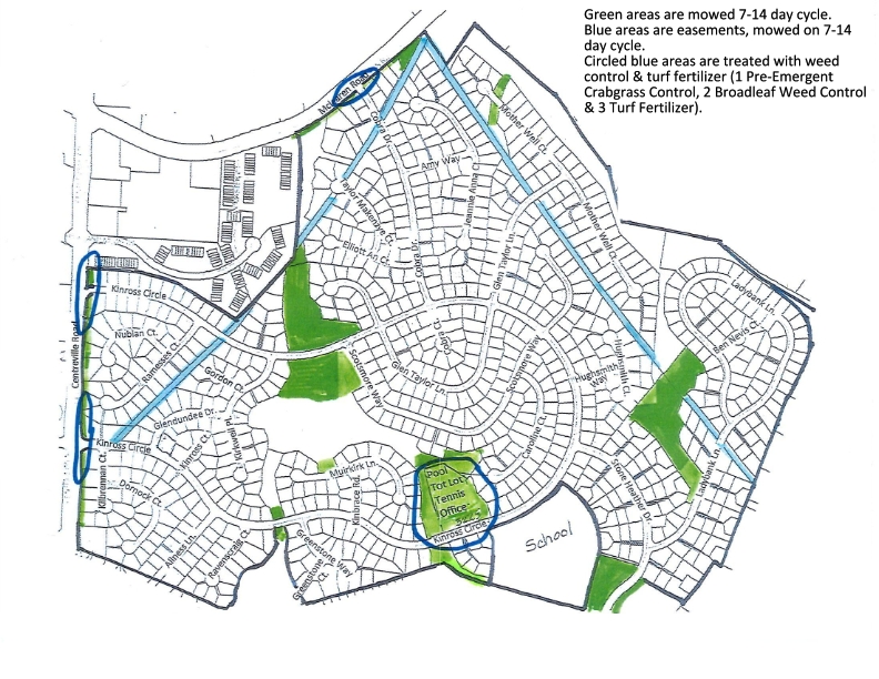 Refer to this service map for the common areas which are maintained by the landscaping company. When contacting us with a concern, include pictures when possible.